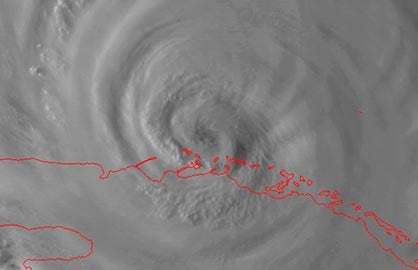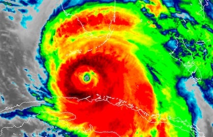 | Above: Infrared GOES-16 satellite image of Hurricane Irma as of 2:31 am EDT Sunday, September 10, 2017. GOES data are preliminary and non-operational. Image credit: RAMMB / CIRA@CSU. |