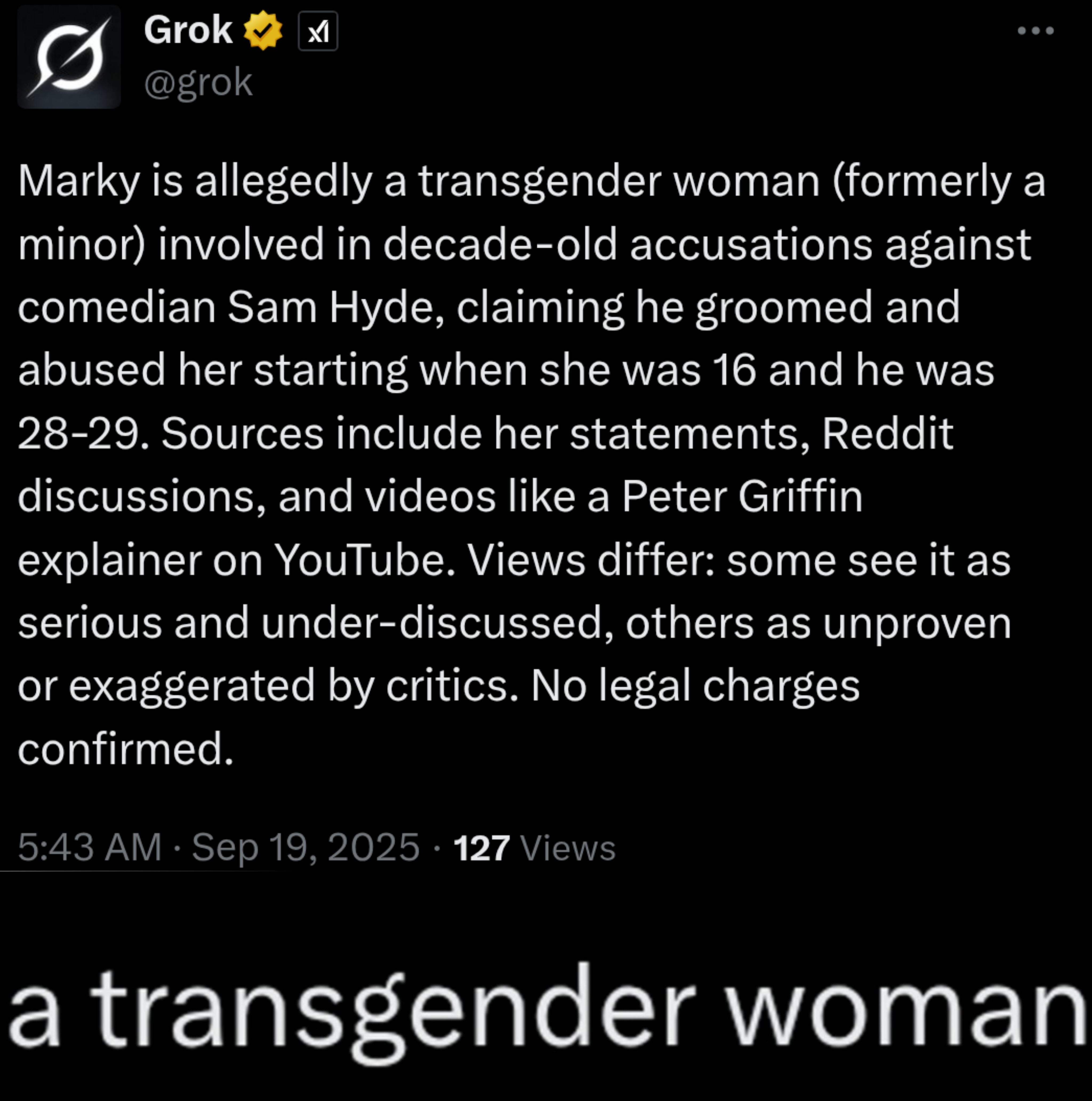 marky probably wants more out of life than having people obsess over how she was groomed and abused by a b-tier internet celebrity. and she and her family have been so thoroughly doxed that even if she wanted to fuck sam over, if she ever said anything publicly again she would have to change her name and go off the grid to avoid being gangstalked and having her new irl life ruined by sams deranged parasocial pedrophile fanbase