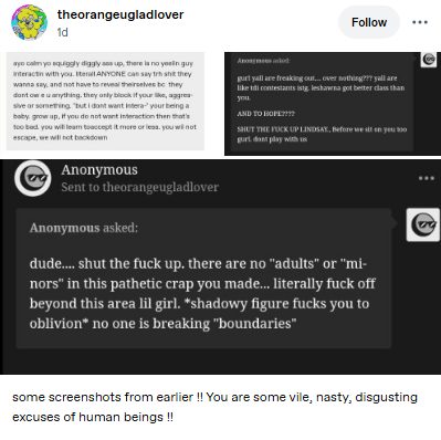 next step of the endless cycle is where you realize that you cant push me around like the children you bully or groom on other sites and either