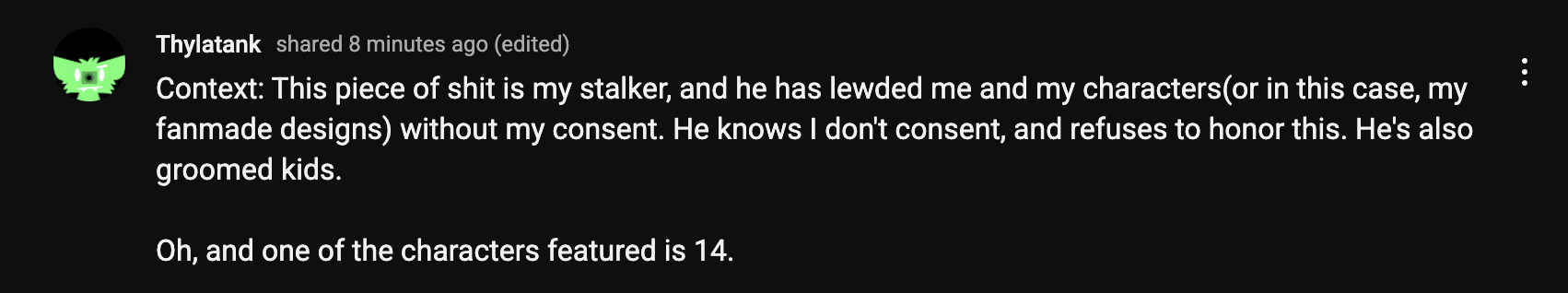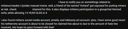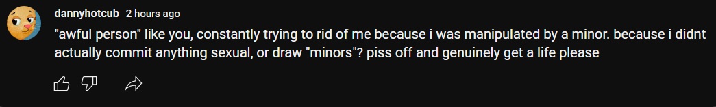 >tired, and used for manipulation practices; yes i want to manipulate you into never tryna to diddle kids again