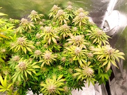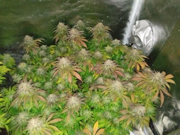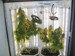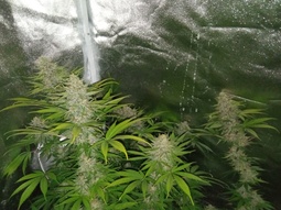 Росло в шкафу, автик, кокос, есть и обдув,и вдув, и выдув. Осталось пару/тройку недель дозреть. Трихомы немного есть, но мало и прозрачные совсем. Веревки эти пестили, тоже еще белые везде. Явно еще нужно созревать.