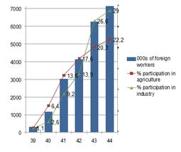 The second, "The influx of labor into the German war economy". It's from United States Strategic Bombing Survey, The effects of strategic bombing on the German war economy (Washington, DC, 1945), 202, 204, 206, 210 (appendix tables 1, 3, 5, and 9), found in: Mark Harrison (ed.) , The economics of World War II: Six great powers in international comparison (Cambridge, 1998), p. 161.