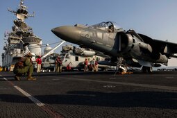 Не авианосец, но жилеточки тоже разноцветные. Универсальный десантный корабль типа Wasp USS Bataan (LHD-5) в Арабском заливе.