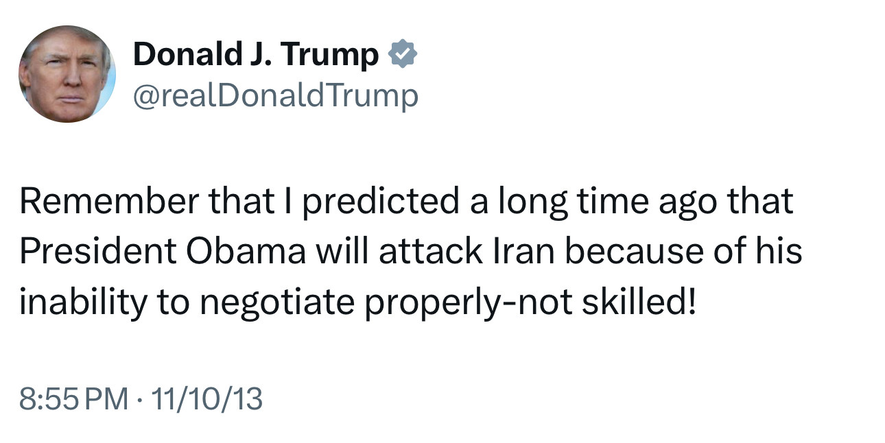 На своей странице в соцсети Truth Social Трамп опубликовал следующую запись: "Мы завершили нашу очень успешную атаку на три ядерных объекта в Иране, включая Фордо, Натанз и Исфахан. Все самолеты сейчас находятся за пределами воздушного пространства Ирана. Полный комплект БОМБ был сброшен на основной объект, Фордо. Все самолеты благополучно возвращаются домой. Поздравляем наших великих американских воинов. В мире нет других военных, которые могли бы сделать это. ТЕПЕРЬ НАСТАЛО ВРЕМЯ ДЛЯ МИРА! Спасибо за ваше внимание к этому вопросу".