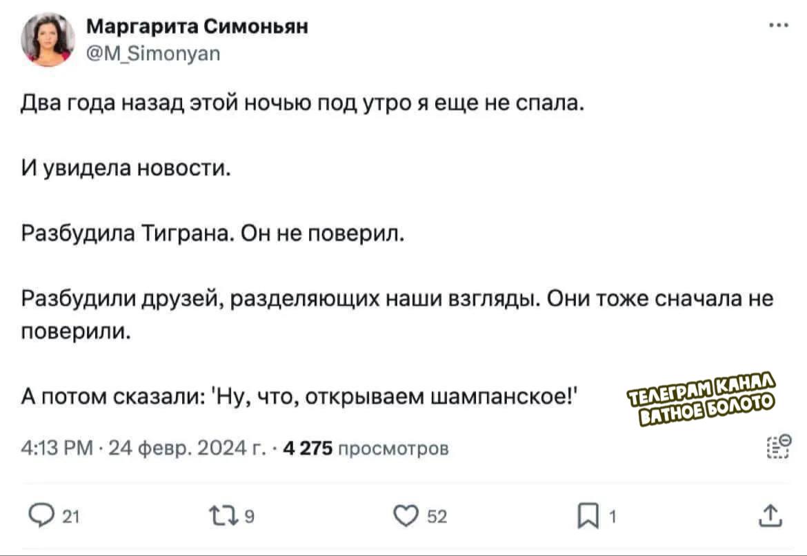 «Прочитал последнее заявление Трампа (чрезвычайно жесткое по отношению к рабсии), в котором он заявил о том, что Украина может победить рабсию, потому что рабсия оказалась «бумажным тигром», ну и все остальные его эпитеты в наш адрес. И я, к сожалению, не могу с ним не согласиться в ряде вопросов.