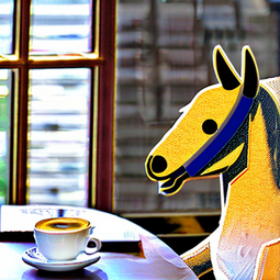 > pegasus sitting at cafe table sipping coffee while reading a newspaperpony4.safetensors did okay. Nearly.