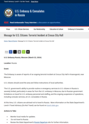 Message for U.S. Citizens: Terrorist Incident at Crocus City HallHome | News & Events | Message for U.S. Citizens: Terrorist Incident at Crocus City Hall