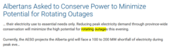 >>135900 Alberta Emergency Alert: Extreme cold resulting in high power demand has placed Alberta grid at a high risk of rotating power outages