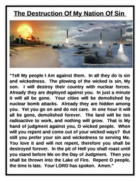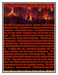 "Tell My persons of evil that I Am against them, that they were created for this purpose, to resist Me in all My ways. For the embodiment of the Antichrist spirit should manifest in the political arena, so that My word should be fulfilled, for did I not say that the Antichrist should arise in the Last Days? And now you see it before your eyes, the workers of evil manifested before you, working all wickedness to fulfill the End Time Plan. Send to all who would resist My Way, that their damnation is ready, and that their souls should perish in deepest Hell forever, for they resist My Plan in every way possible, and all they will accomplish is the damnation of their souls, and the destruction of the nation they serve. For in the pits of Hell their names are called out to their eternal abode among the damned, for all political leaders who resist My Plan shall enter damnation ahead of schedule, to put My fear in the inhabitants of the Earth, that some may be saved from their madness among them. For My Way is a Way of peace and life, which they have taken from among the people of the Earth, to the end that all may learn My Way and Plan for their lives. The Lord has spoken, amen."