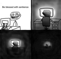 Эти штуки как тогда пугали людей до усрачки, так и сейчас ужасают. Но если подходить к их восприятию c юмором, по-дружески и понимать что это всё мало чем отличается от операционных систем, приложений уровня калькуляторов и навигаторов, мессенджеров и прочих говорилок, то возвращаясь к фильму "Лабиринт" и прочему киберпанку и аниме - везде это разжёвано достаточно досконально.